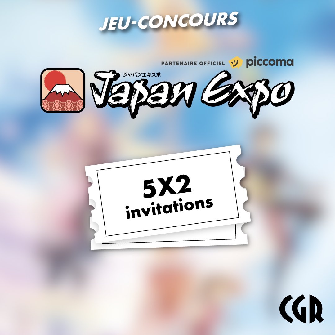 Cette année CGR Cinémas est partenaire de Japan Expo et pour l'occasion nous mettons en place un jeu concours pour vous faire gagner 5x2 invitations pour une journée (hors samedi 16 juillet). Pour participer : 👉 Follow @CGRCinemas 👉 RT Tirage au sort le 12.07