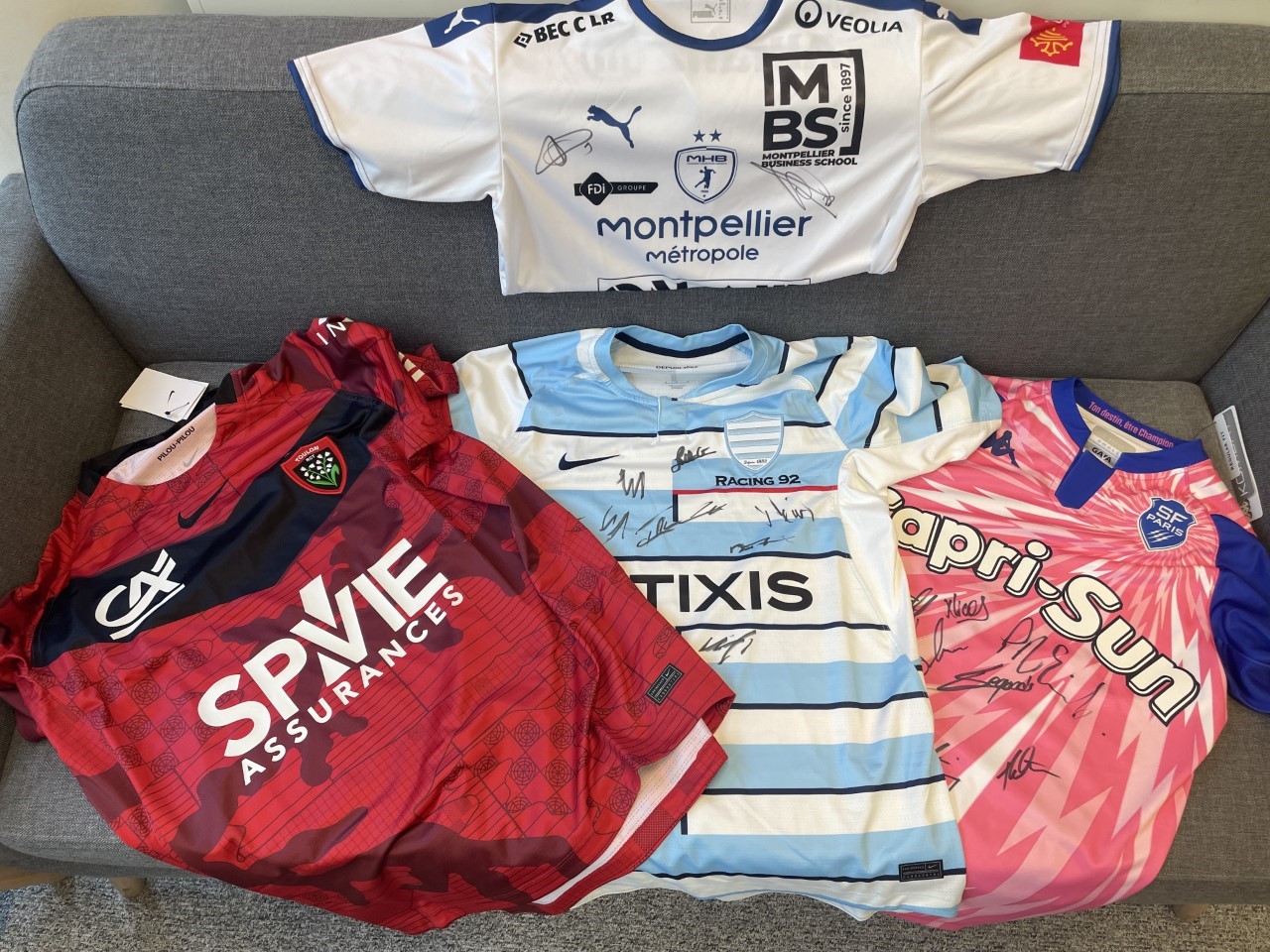• 1 maillot de rugby au choix parmi Racing 92, Stade Français, RC Toulon ou Montpellier Handball