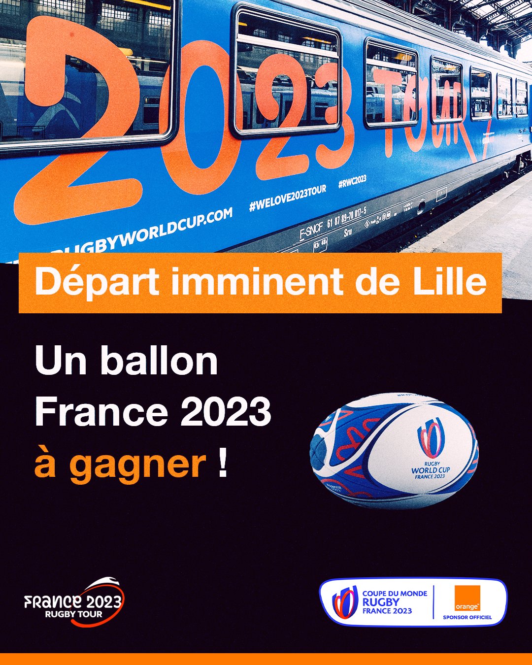 Pour célébrer l’arrivée du train, @Orange t’offre un joli cadeau 🎁​✨ Un ballon @France2023 ✨ Pour tenter de le remporter, rien de + simple : ​ 1️⃣ Follow @TeamOrangeRugby ​2️⃣ RT ce tweet​ RDV en gare et en dehors pour célébrer le rugby 🥳