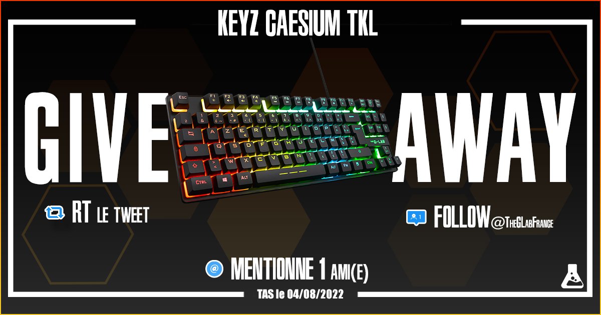 🎁#CONCOURS🎁 Tente de gagner notre tout nouveau clavier : Le Keyz Caesium TKL ! 🤩 Pour participer : ✅ RT + Follow @TheGLabFrance ✅ Mentionne 1 ami(e) qui a vraiment besoin d'un nouveau clavier ! 🏁 TAS : 04/08/2022 Bonne chance à toutes et à tous ! 🧪
