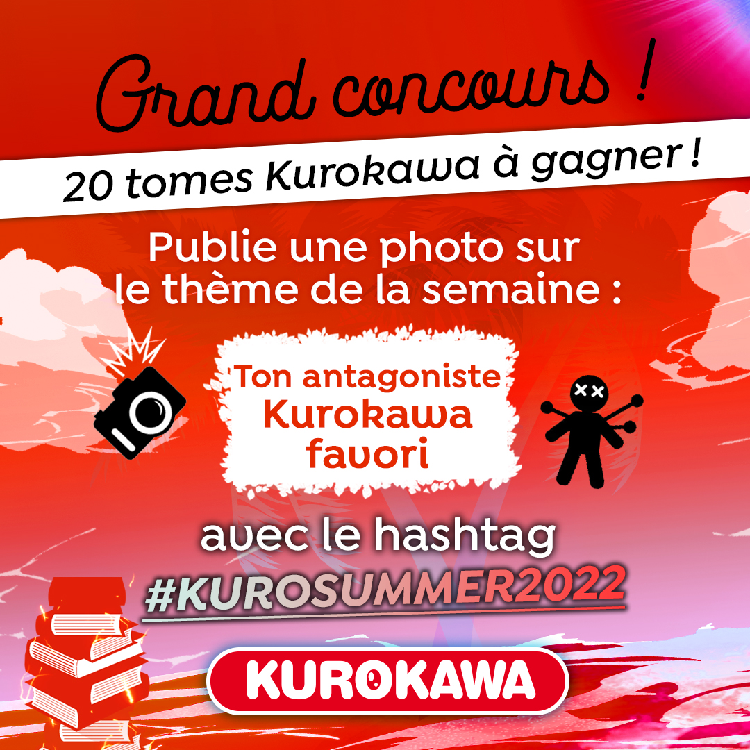 Concours Twitter : follow le compte + retweet une photo sur le thème "Ton antagoniste Kurokawa favori" avec le #KuroSummer2022.