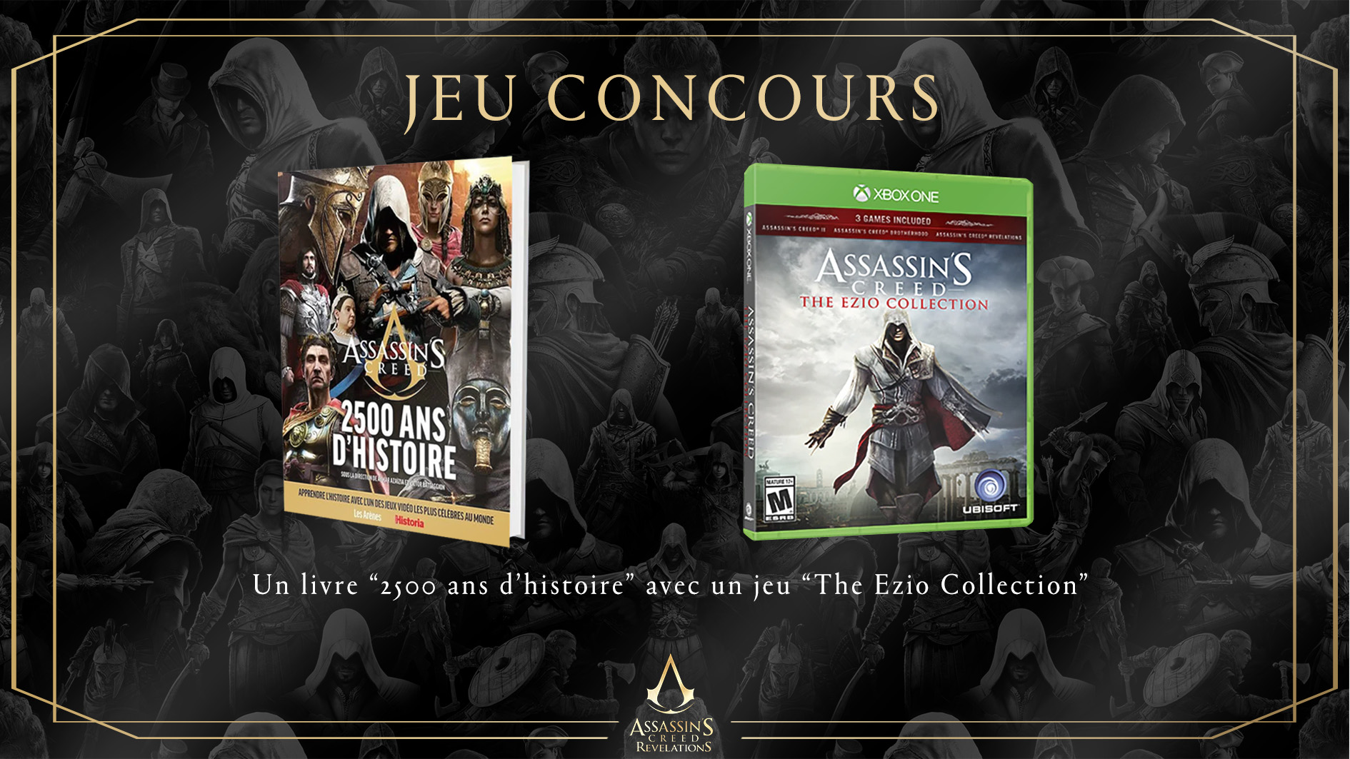 • 1 lot composé de 1 jeu vidéo Xbox "Ezio Collection" + 1 livre "2500 ans d'histoire"