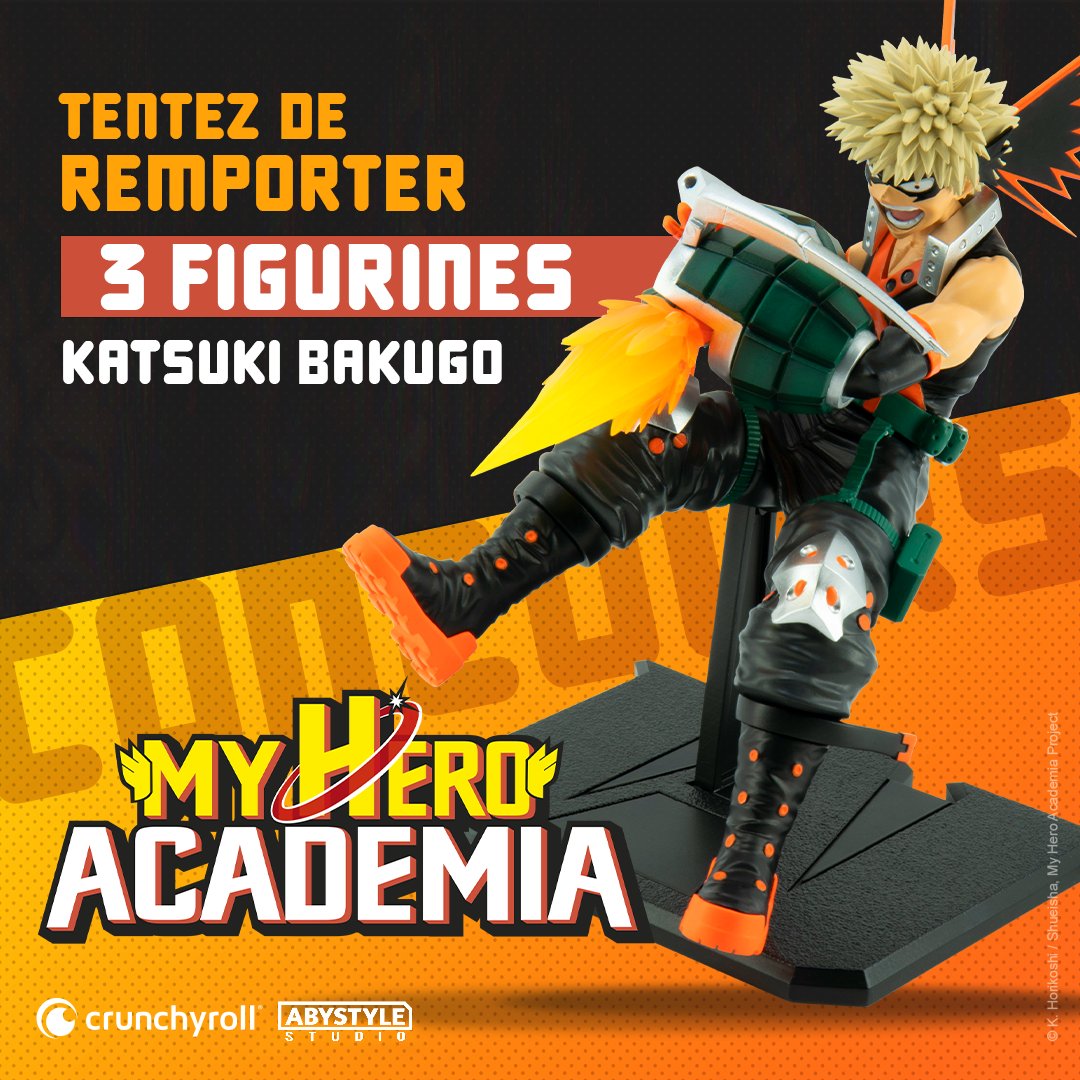 🦸 #CONCOURS 🦸 Tentez de remporter 3 figurines Katsuki Bakugo de chez @abystyle_studio ! 👊 🚩Comment participer ?🚩 ☝️ Follow @MHAOfficielFR & @abystyle_studio ✌️ RT ce tweet TAS 26/08 à 18h00 📅