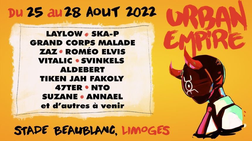 • 1 pass 4 jours pour 2 personnes pour le Urban Empire Festival à Limoges du 25 au 28 août