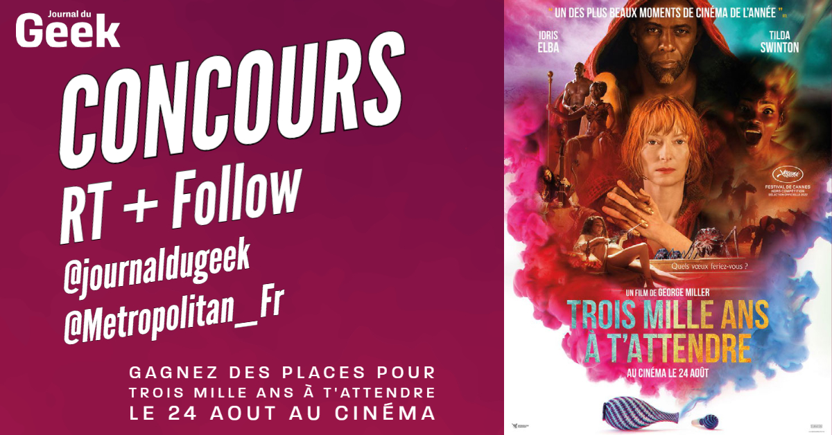 🎁#CONCOURS 🎁 Tentez de gagner des places pour le film #TroisMilleAnsÀTAttendre de George Miller, qui sort au cinéma le 24 août. 👉Pour participer : RT & Follow @journaldugeek + @Metropolitan_Fr 👉La bande-annonce : https://t.co/FKYBBClHD0 🍀Bonne chance à tous !
