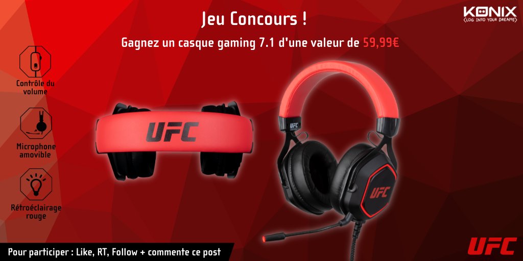 [CONCOURS] On vous fait gagner un casque #gaming #UFC 🤩 ! Pour participer, il suffit de like ce post, follow notre compte et tag un de tes amis en commentaire ! TAS le 5 septembre. Bonne chance ! 🍀 #Konix #KonixCommunity #Giveawa #JeuConcours #Concours #Contest