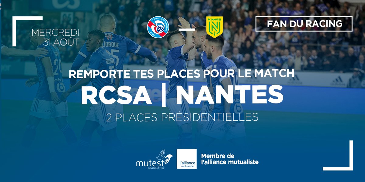 • 2 invitations pour le match de foot "Strasbourg / Nantes" en tribune présidentielle le 31 août