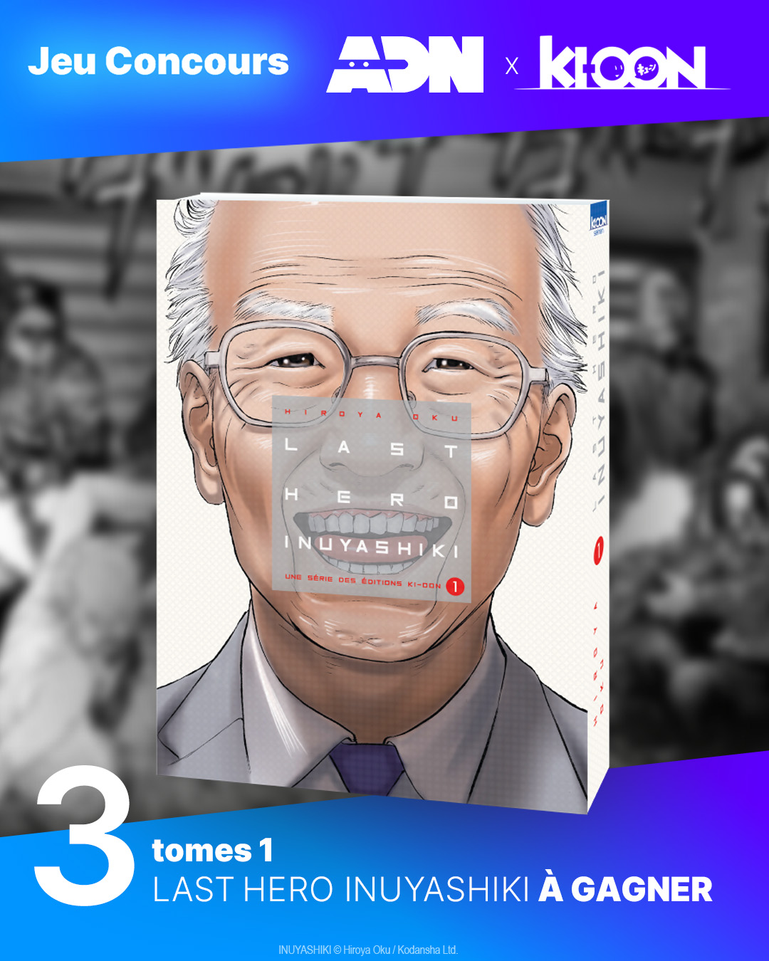 🎁 CONCOURS​ 🎁 Pour fêter l'arrivée de "Last Hero Inuyashiki", Ki-oon et ADN s'associent pour vous faire gagner 3 tomes 1 de Last Hero Inuyashiki ! Pour participer : 🔹RT le post 🔹Follow ADN et @ki_oon_Editions TAS le 22 septembre !