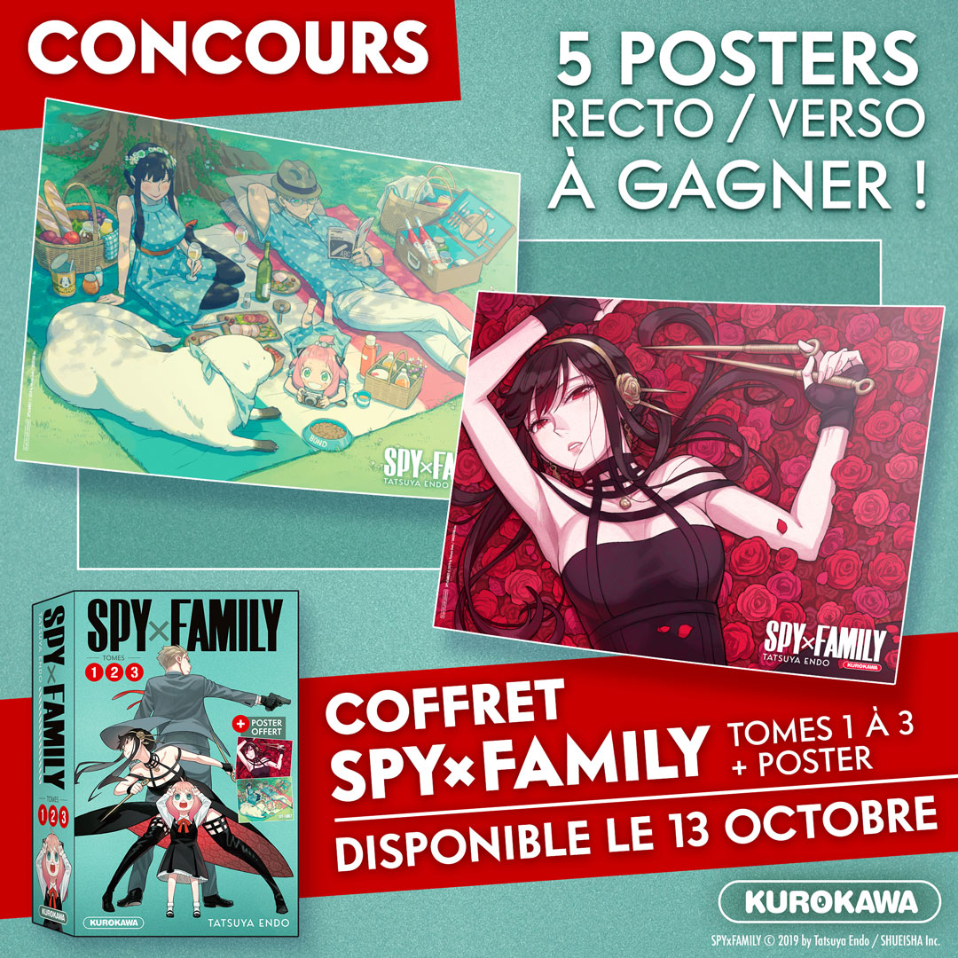 #Concours - Suite à l'annonce du coffret #Spy_Family dans le dernier #KuroLive, on te propose de #gagner son poster #collector 😍 Pour participer : 👁 Suis @Kurokawa 👁 Retweet ce post Bonus : tague 2 amis TAS : 23/9/2022 à 23h59, 5 gagnants. Coffret disponible le 13/10 🆕