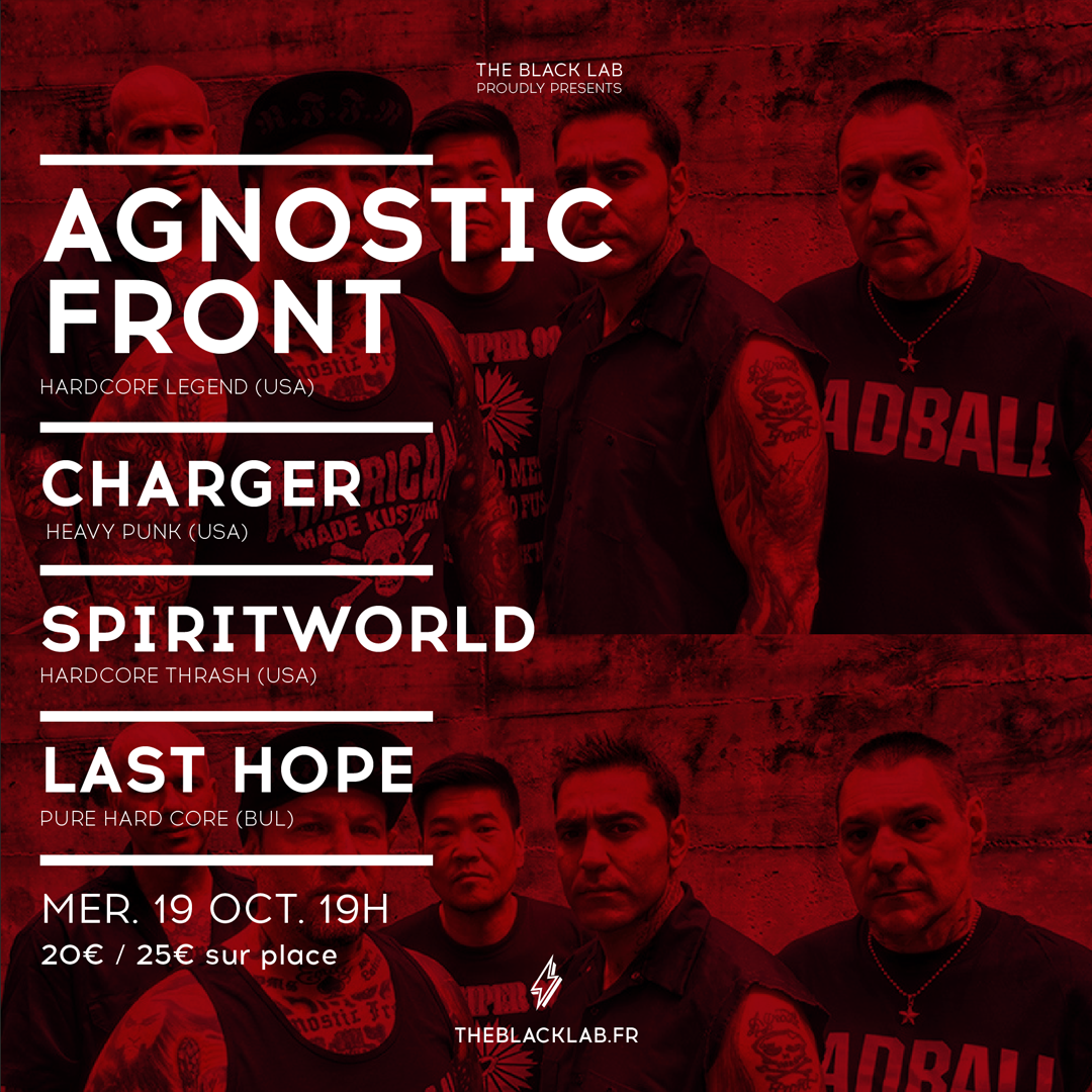 • 2 x 2 invitations pour le concert de Agnostic Front + Charger + Spiritworld + Last Hope le 19 octobre à Wasquehal