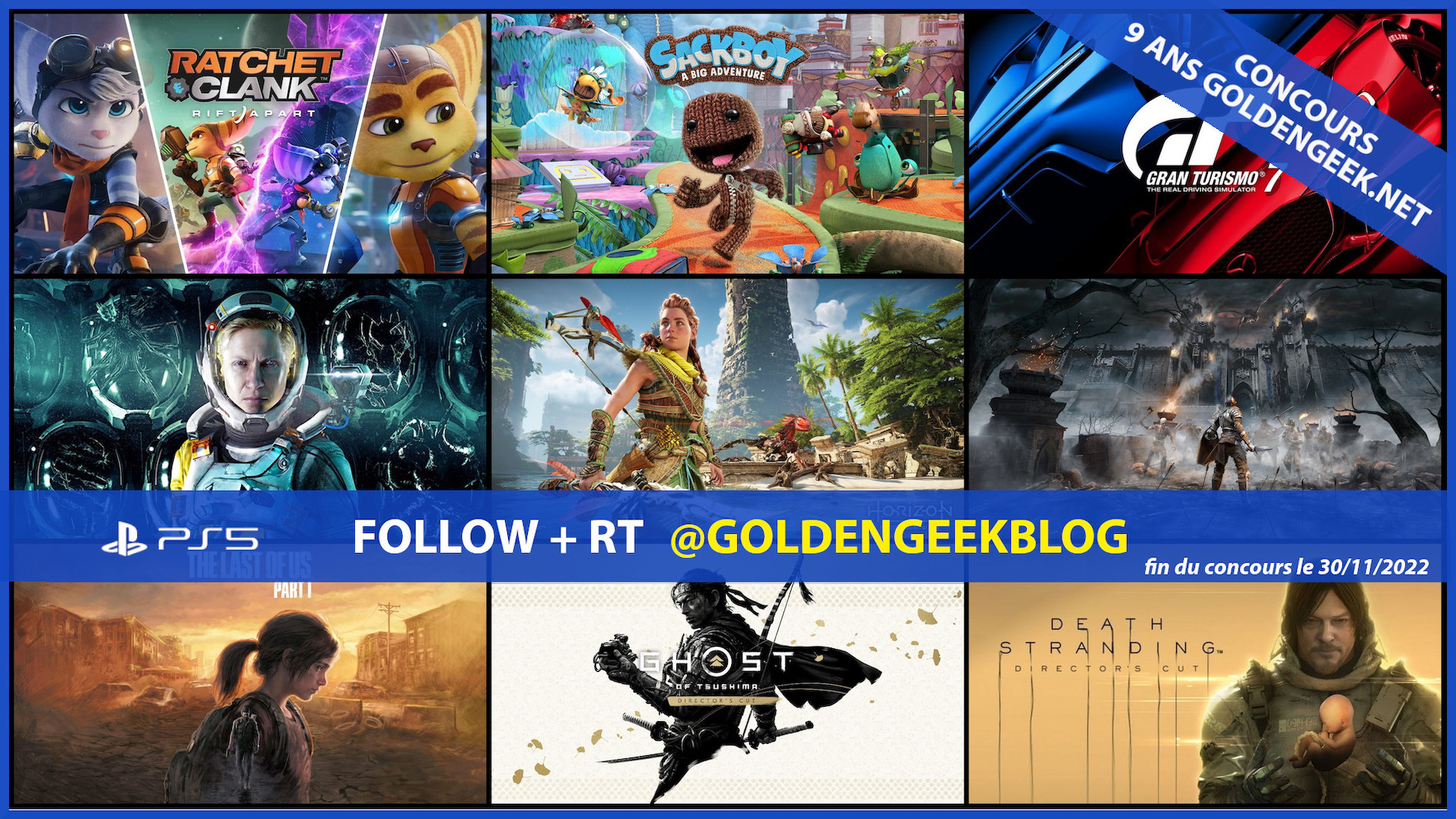 🎂 #CONCOURS 🎂 ➡️ FOLLOW + RT ⬅️ 9 ans de https://t.co/YuvNX6EEHu ? Ça fait un méga lot de 9 jeux #PS5 à gagner 🎁 TAS le 30/11/2022 🍀