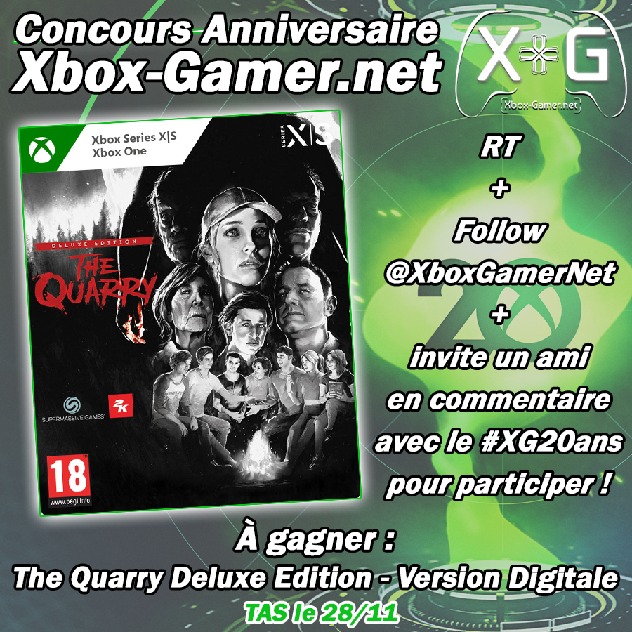 Concours Twitter : follow le compte + retweet + commentez la publication avec avec #XG20ans + identifiez 1 ami.