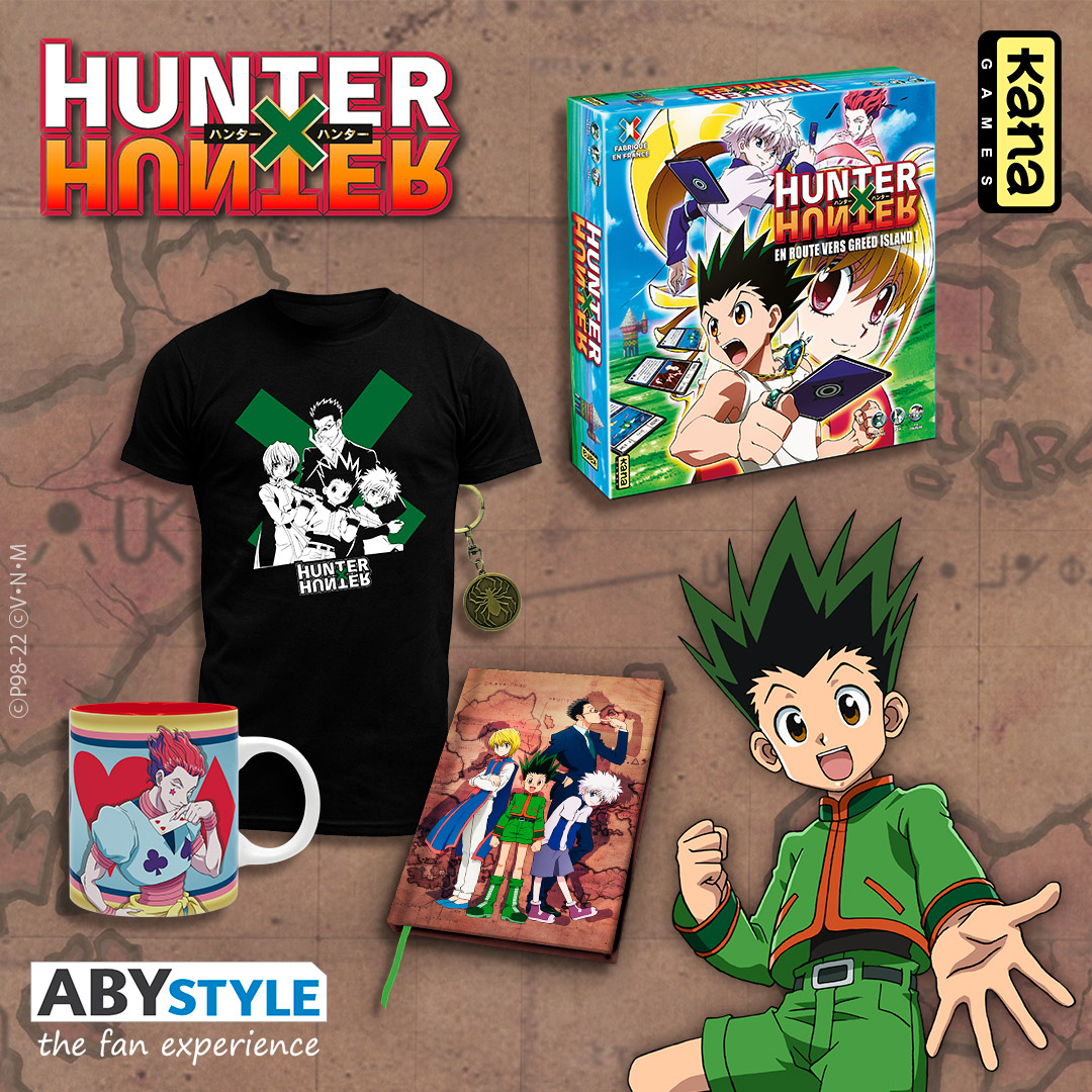 Concours Hunter x Hunter ! On vous propose de remporter un exemplaire du jeu de société, un t-shirt, un cahier ainsi qu'un mug de la série ⭐️ Pour participer : ➡️Follow @_ABYstyle & @EditionsKana 🔁RT ce post TAS le 22/11