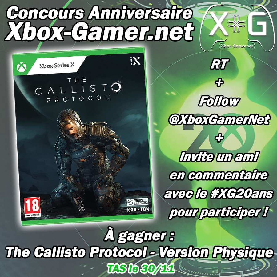 Concours Twitter : follow le compte + retweet + commentez la publication avec #XG20ans + identifiez 1 ami.