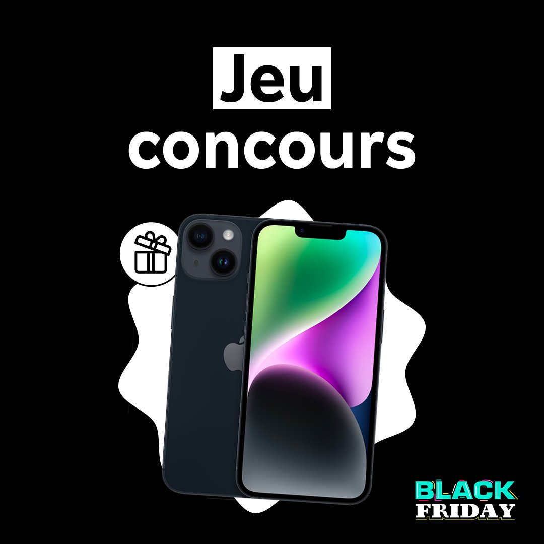 🔥 Concours #BlackFriday 🔥 C'est LE jeu concours à ne pas manquer : tente de gagner l'#iPhone 14 Minuit (128 Go) 📱✨ Pour participer : 👉 Suis @RakutenFrance 👉 RT avec le #RakutenBlackFriday TAS le 02/12 🍀 #iPhone14 #Apple #concours