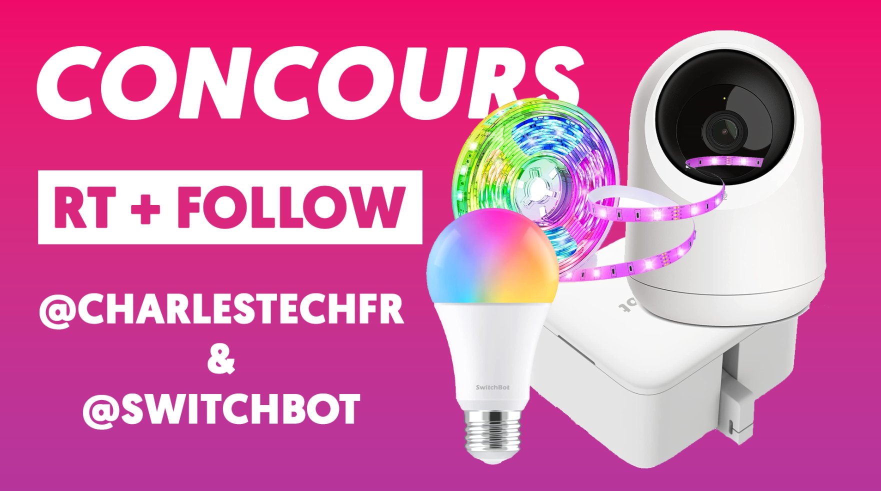🎁 #CONCOURS - Gagne ton pack caméra + bande LED + ampoule LED et bouton connecté ! Tout ça 😍 🔁 RT ce tweet 👉 FOLLOW @charlestechfr et @SwitchBot 🔔 Active la cloche pour ne rien louper ! 📅 Tirage au sort le 09/12/2022