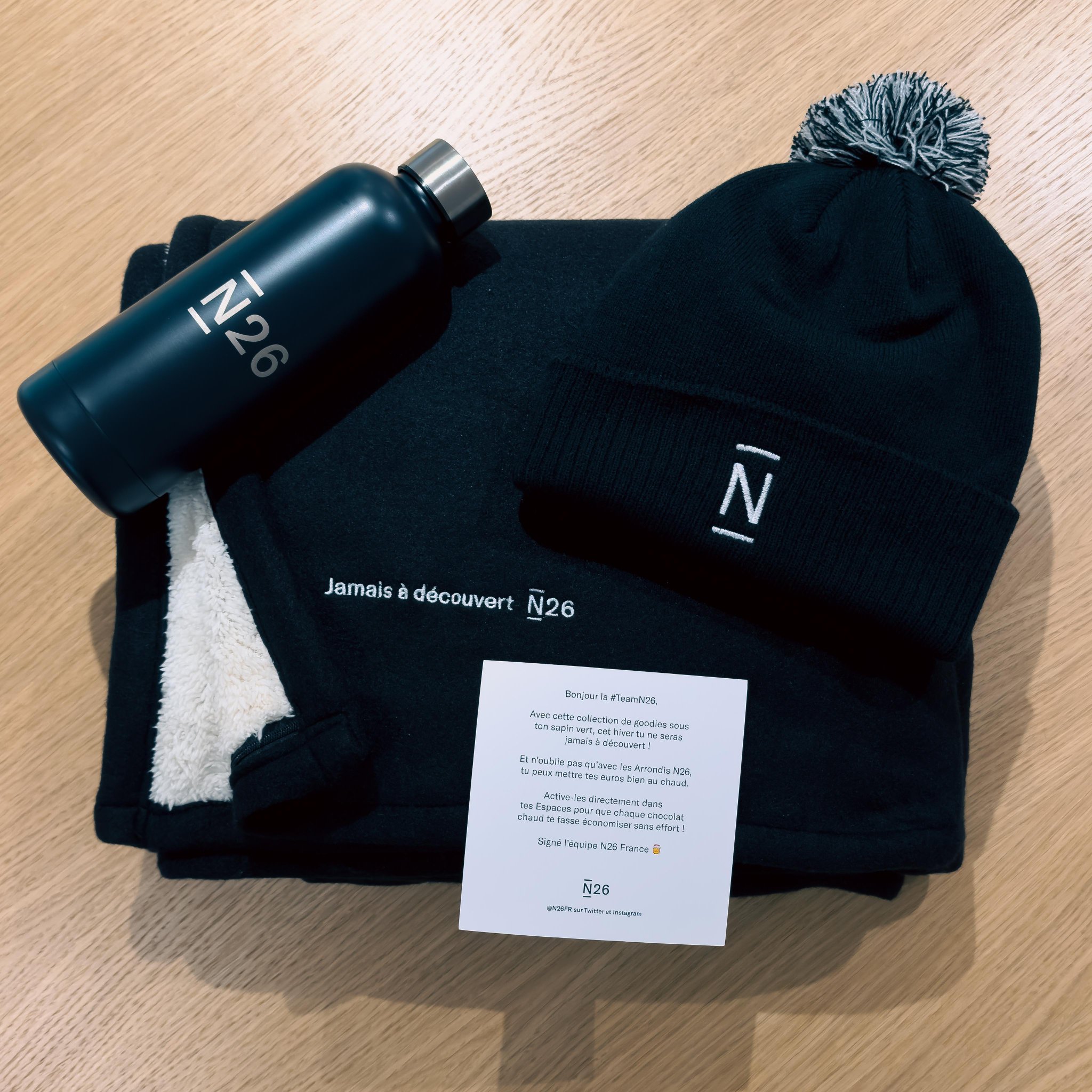 Jouez pour gagner des goodies N26 composés de 1 plaid + 1 bonnet + 1 gourde