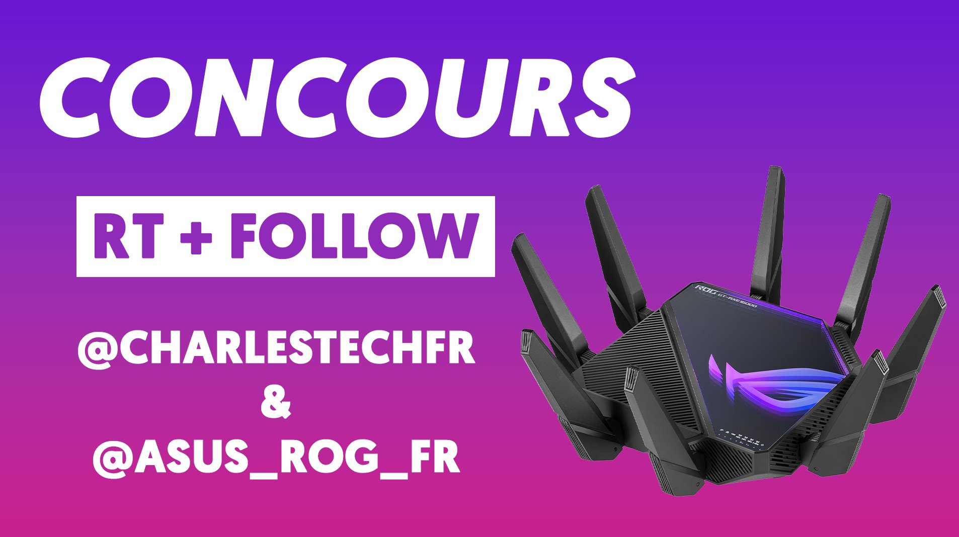 Jeu Charles Tech n°365166 pour gagner 1 routeur Wi-Fi quadribande Asus ROG Rapture GT AXE