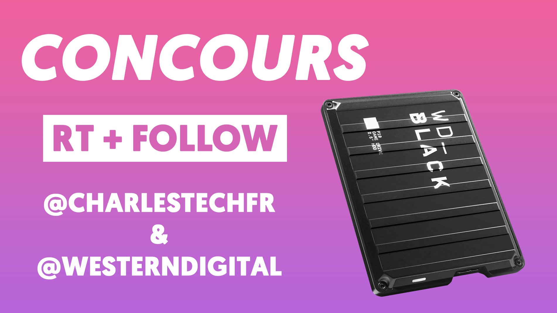 🎁 #CONCOURS - Gagne ton disque dur externe Western Digital, d'une capacité de 4 To ! 🔁 RT ce tweet 👉 FOLLOW @charlestechfr et @westerndigital 🔔 Active la cloche pour ne rien louper ! 📅 Tirage au sort le 23/12/2022