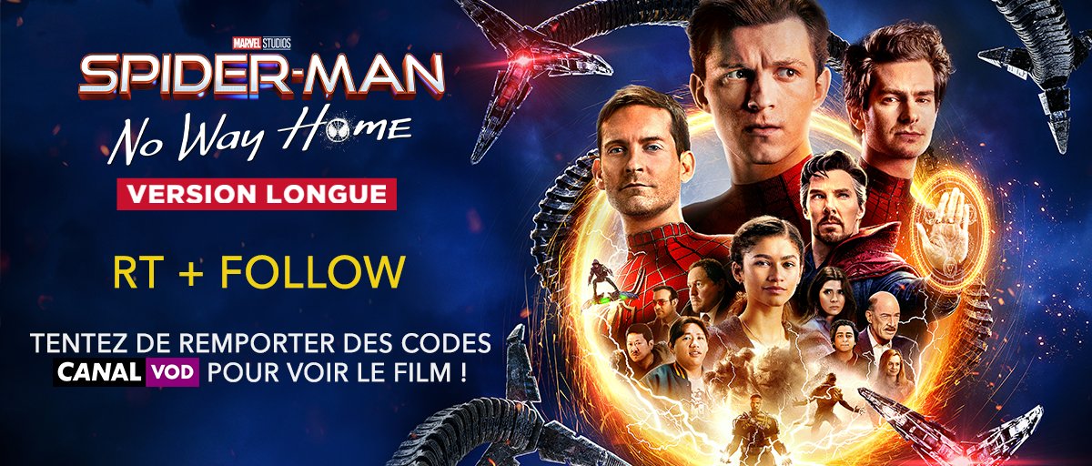 À l'occasion de la sortie de #SpiderManNoWayHome - Version Longue en VOD, tentez de remporter des codes Canal VOD pour voir le film : 🕹 RT + Follow @SPHEFR Concours valable uniquement en France Métropolitaine. TAS le 22/12