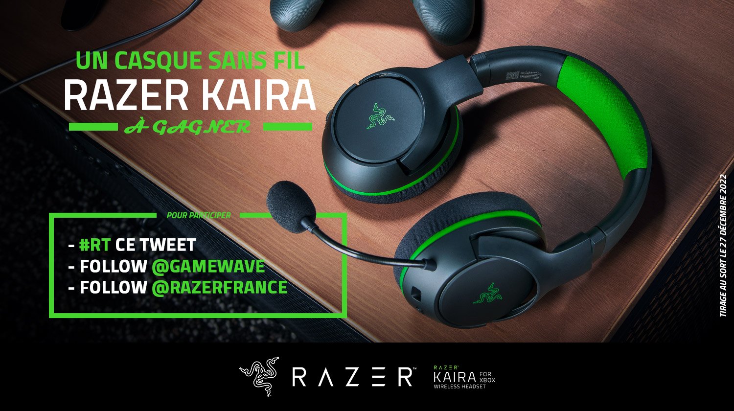 #CONCOURS 🎁 Pour finir royalement cette année 2022, tente de remporter ce magnifique casque sans fil Razer Kaira ! 😍💚 Pour participer : - #RT ce tweet - Follow @GAMEWAVE - Follow @RazerFrance 📆 TAS le 27/12 Bonne chance à tous ! 🍀