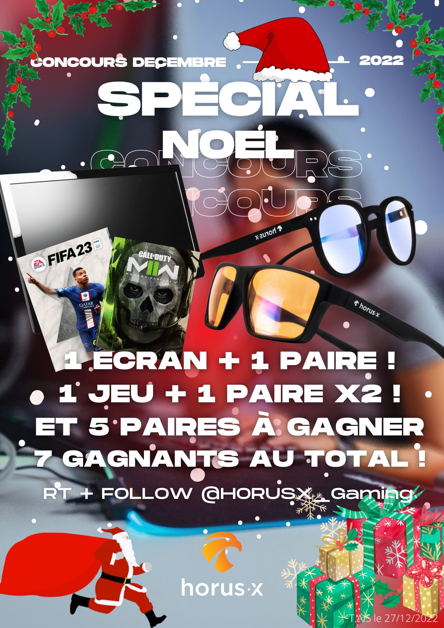 • 1 lot composé de 1 écran Horus + 1 paire de lunettes gaming