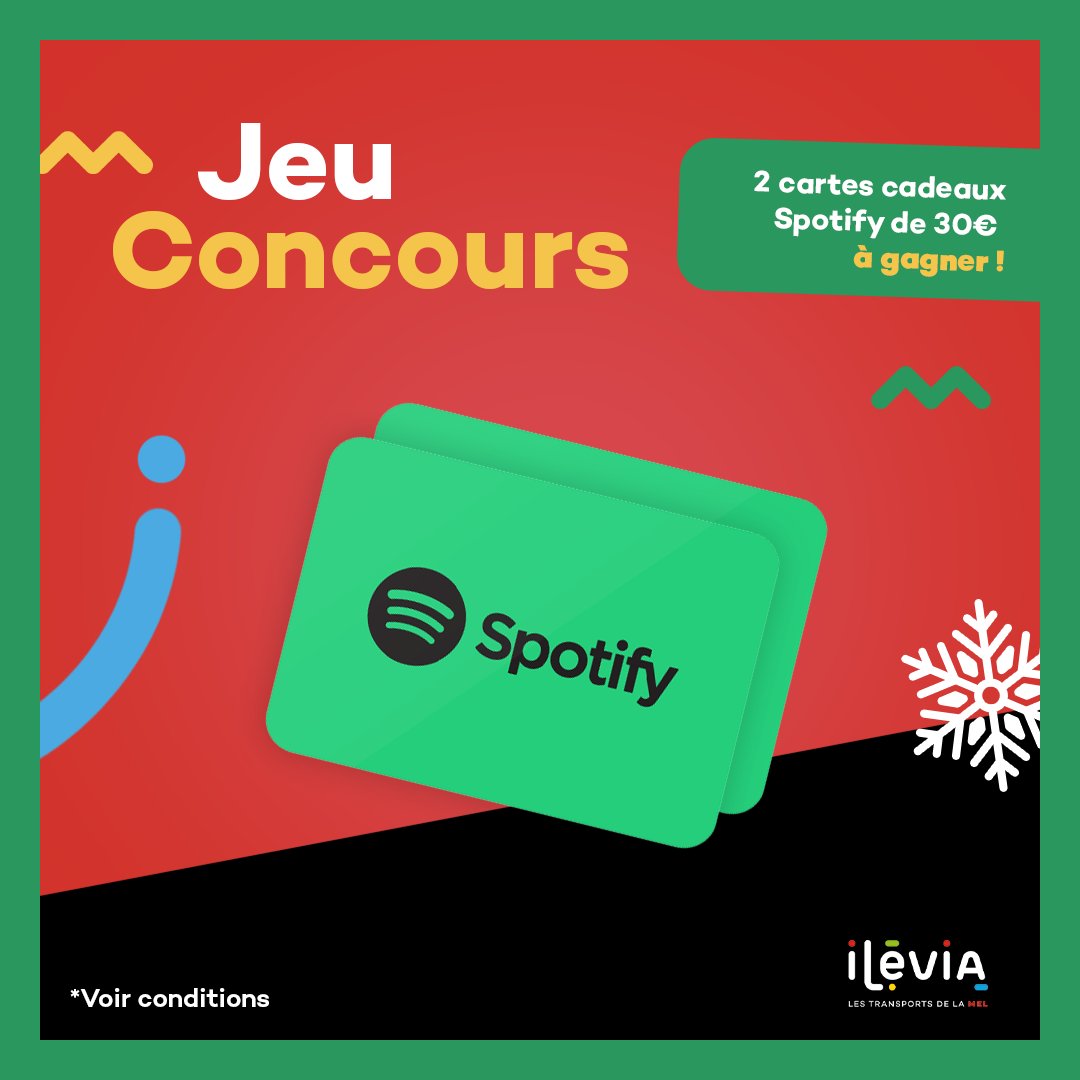 • 2 cartes cadeaux Spotify de 30 euros