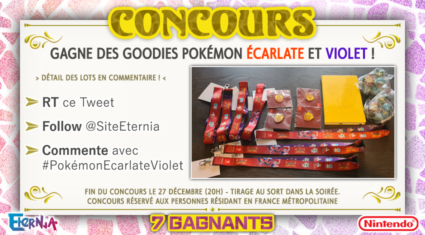 #CONCOURS 🎁🎄 Hey, les potes ! On a tous ces goodies à faire gagner grâce à @NintendoFrance ! Un joli cadeau de fin d'année, non ? 😍 🔹 RT ce Tweet 🔹 Follow @SiteEternia 🔹 Commente avec #PokémonEcarlateViolet 🗓️TàS le 28/12 🏆 7 gagnants 🌍France Métropolitaine seulement