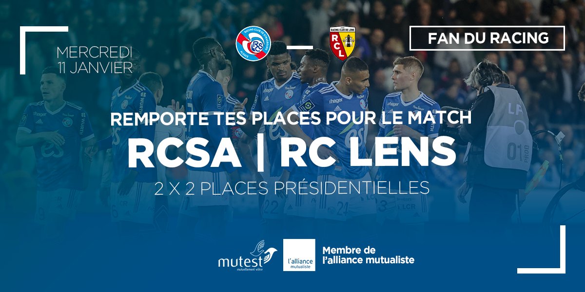 [#Concours ⚽️] 🎁Fan du #Racing ? Mutest sponsor officiel de la #RacingMutestAcadémie vous offre 4 places 🎫 pour le match #RCSARCL en Présidentielle Pour tenter votre chance : 🔷RT ce tweet 🔷Suivre notre compte @mutuellemutest 🍀TAS le 09/01 Bonne chance et Allez RACING⚪️🔵
