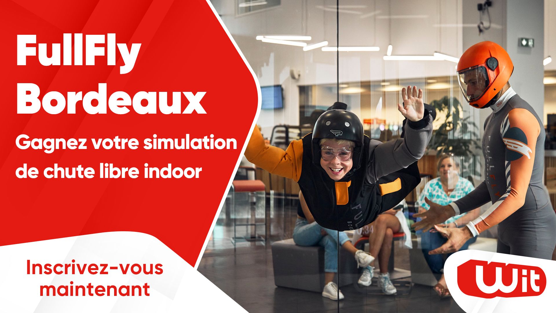 Jeu Wit n°367506 pour gagner 1 séance de simulateur de chute libre en soufflerie FullFly pour 4 personnes à Bordeaux