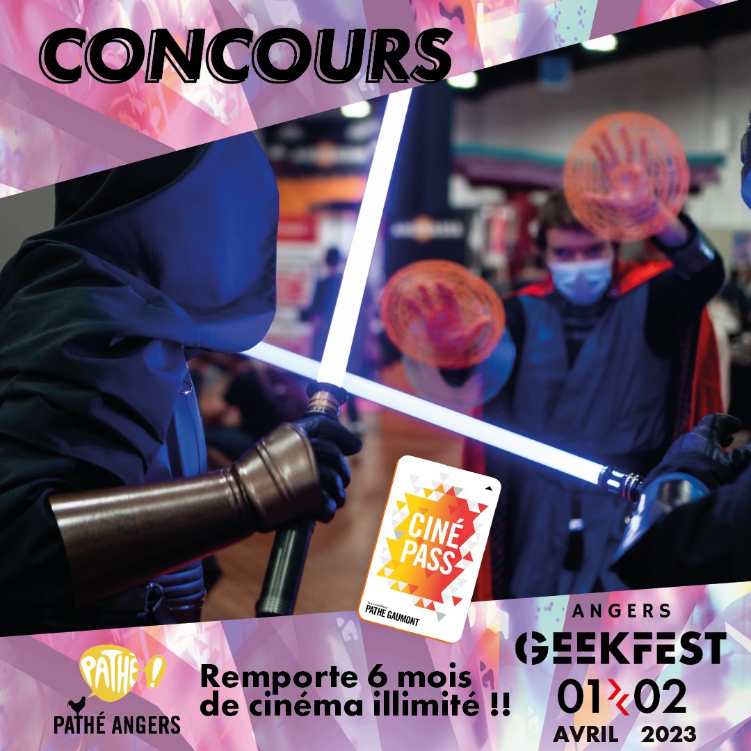 • 1 lot composé de 6 mois de cinéma illimité au Pathé Angers + 2 invitations pour le festival Angers Geekfest les 1er et 2 avril