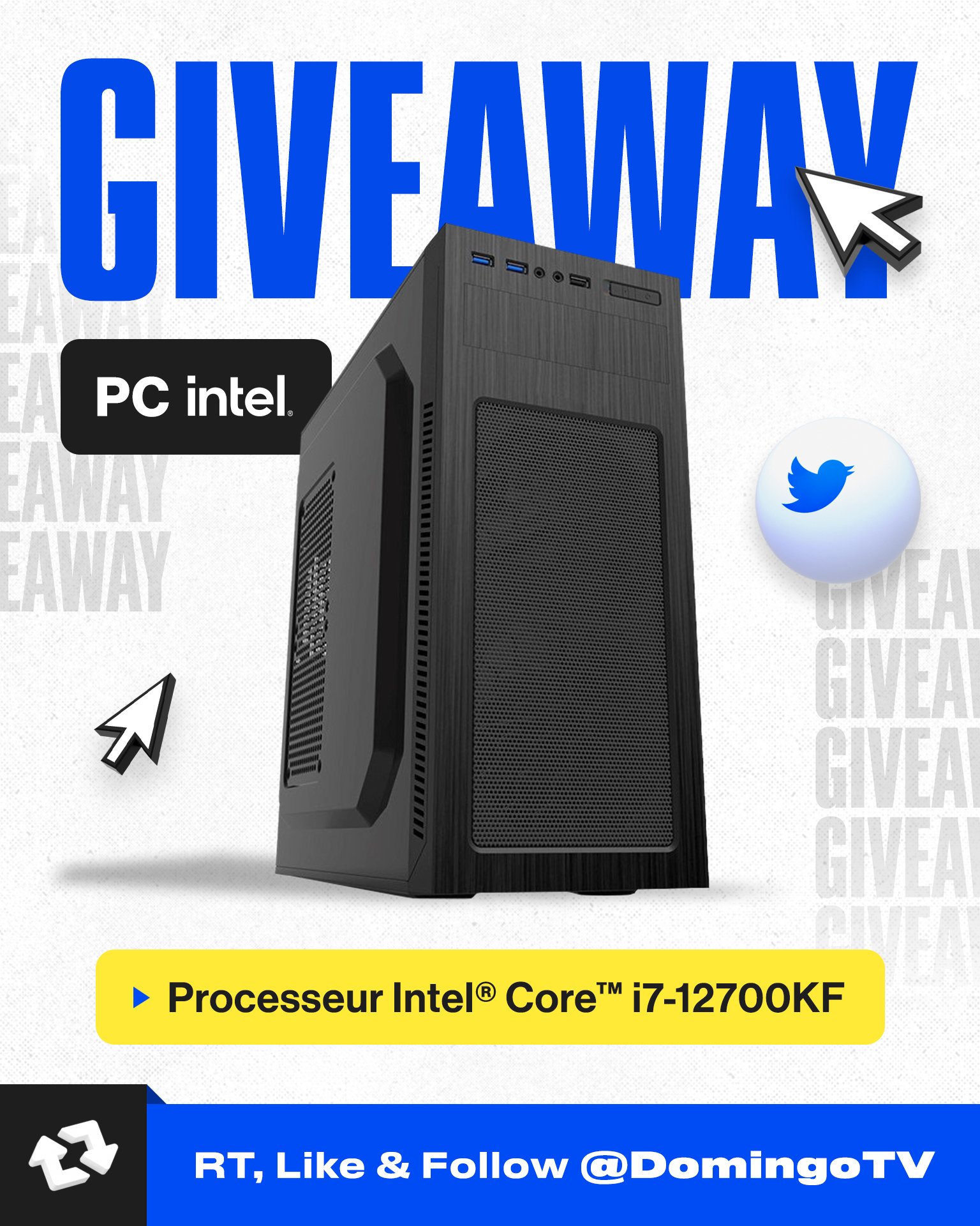 [GIVEAWAY] On vous fait gagner un PC d’une valeur de 3000€ avec processeur Intel i7 12700KF en compagnie d’@IntelFrance ! Pour participer, RT/like le tweet et follow @DomingoTV, tirage au sort le 10/02 🍀 #sponsorisé