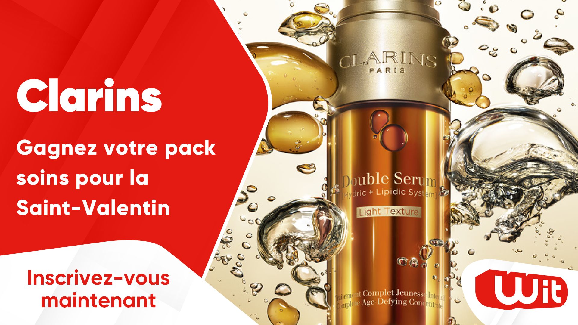 Jeu Wit n°368325 pour gagner 1 pack Saint-Valentin Clarins composé de 2 soins à Bordeaux + 5 produits de beauté (350 euros)
