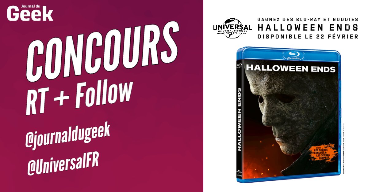 🎁#CONCOURS 🎁 A l’occasion de la sortie de Halloween Ends en DVD, Blu-Ray, 4K, gagnez des Blu-Ray et goodies du film ! 👉Pour participer : RT & Follow @journaldugeek + @universalfr 👉Bande -annonce : https://t.co/8VLX9d3fBa 🍀Bonne chance à tous !