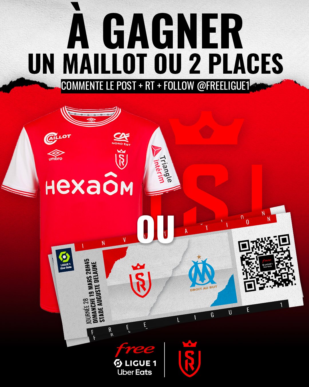 • 1 lot de 2 invitations pour le match de foot "Reims / Marseille" le 19 mars à Reims