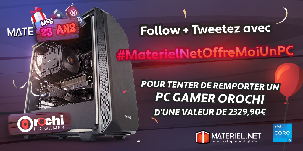 🎁 𝐂𝐎𝐍𝐂𝐎𝐔𝐑𝐒 #MateMes23Ans 🎁 Recevoir notre PC Gamer 🅞🅡🅞🅒🅗🅘, ça vous dit ? Rien de plus simple : tweetez avec #MaterielNetOffreMoiUnPC + follow 😎 📋 Les carac' du PC 👉 https://t.co/x3rxQlJHro 🎰 TAS 04/04 🍀 Bonne chance à toutes et tous