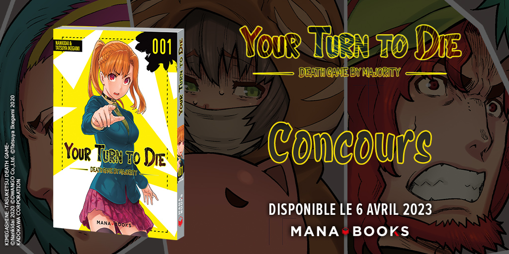 [ CONCOURS ] À l'occasion de la sortie de "Your Turn To Die", Mana Books met en jeu 3 exemplaires du tome 1 de la série ! Pour participer : RT + Follow @Mana_Books_ 3 gagnants seront tirés au sort ! TaS le 5 avril. #Concours #manga