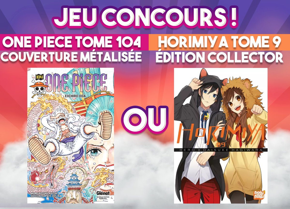 • 1 manga "One Piece - Tome 104" avec couverture métallisée ou "Horimiya - Tome 9" édition collector