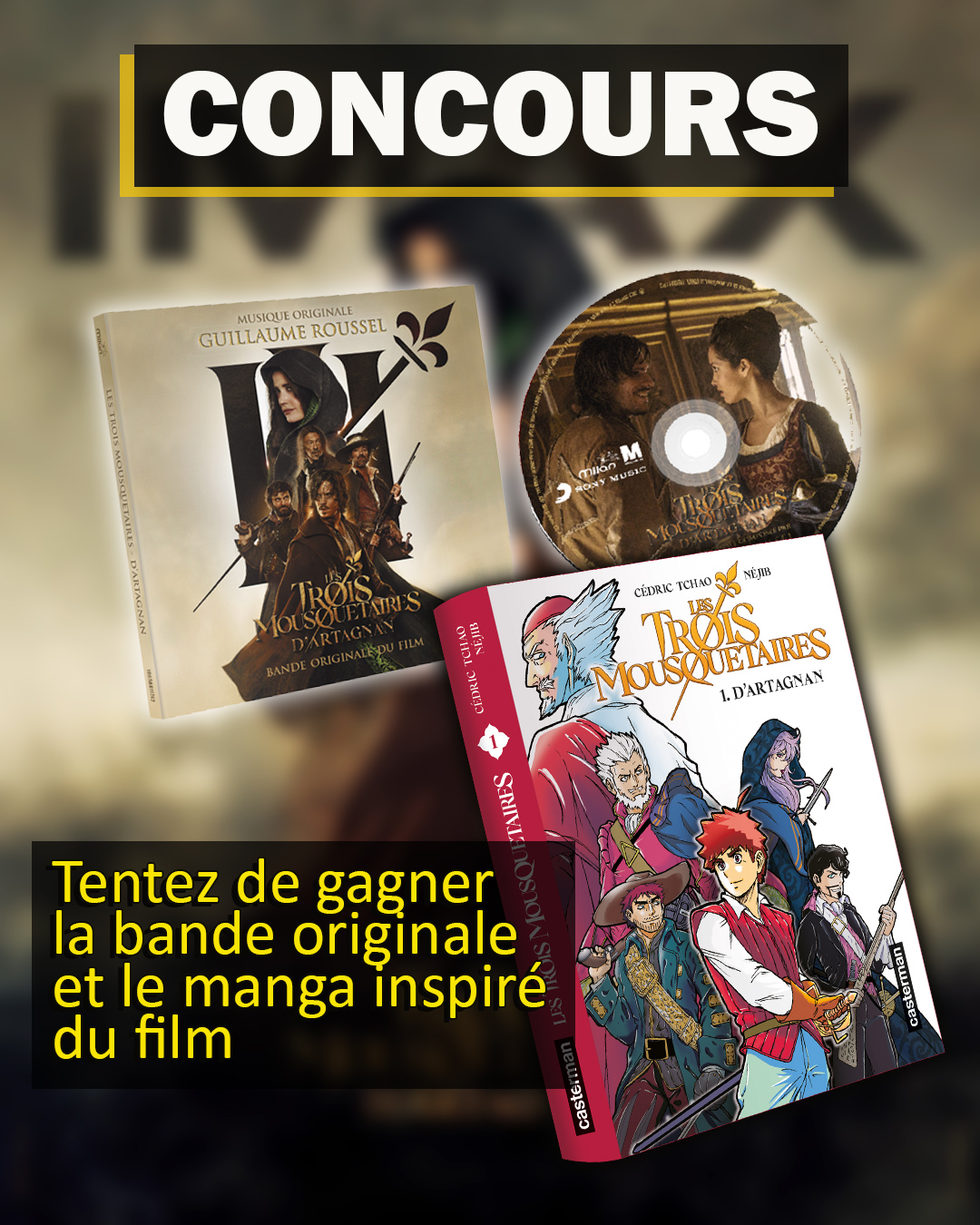 • 3 lots composés de 1 album CD de la BO du film "Les Trois Mousquetaires D'Artagnan" + 1 manga
