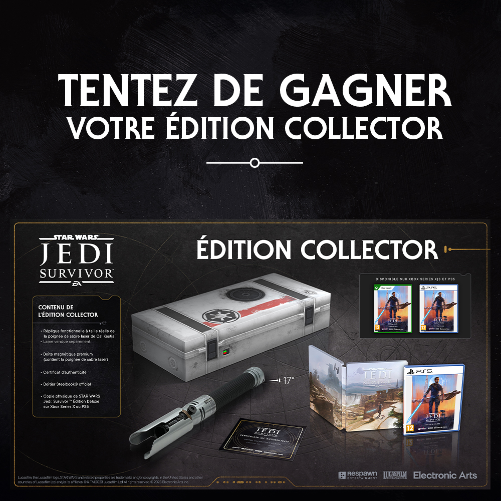 • 1 édition collector du jeu vidéo " Star Wars Jedi Survivor" sur PS5 ou Xbox