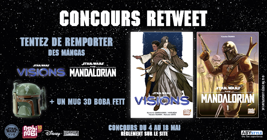 • 1 lot composé de 2 mangas "Star Wars : Visions" + "Star Wars : The Mandalorian" + 1 mug 3D Boba Fett