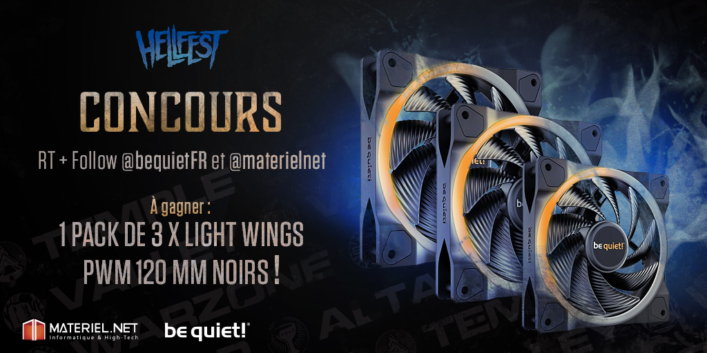 🤘 𝐂𝐎𝐍𝐂𝐎𝐔𝐑𝐒 🤘 À l'occasion du #Hellfest2023, on met en jeu 1 pack de 3 ventilos be quiet! Light Wings 120 mm PWM ARGB ! 👉 RT + Follow @materielnet & @bequietFR pour tenter de le gagner 🎁 📋 https://t.co/bX5Xm262Xz 🎰 Tirage 26/06 🍀 Bonne chance à toutes et tous !