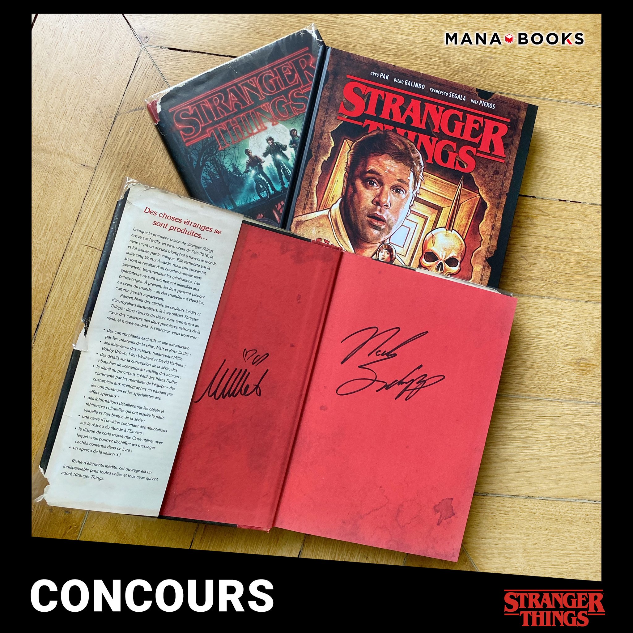 • 1 comics "de "Stranger Things : La tombe d'Ybwen" + 1 comics "Stranger Things : dans l'envers du décor" dédicacé par Millie Bobby Brown & Noah Schnapp