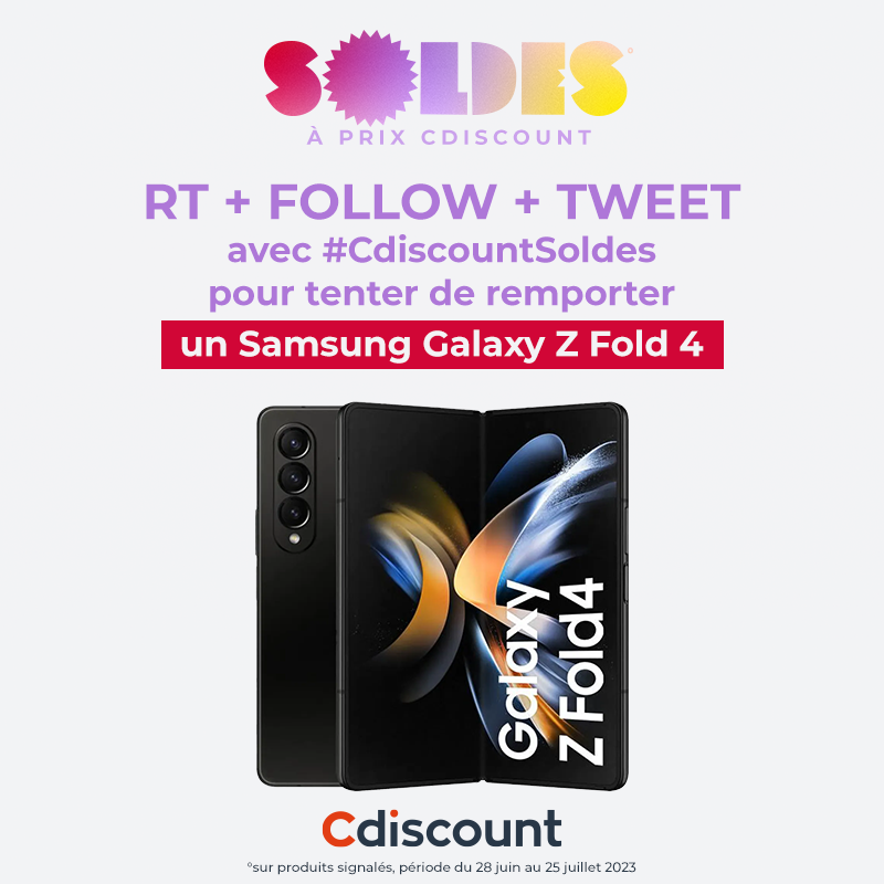 🎁 #Concours Lancement des SOLDES sur Cdiscount 👉 https://t.co/HoTwlbxeXc Tentez de remporter un SAMSUNG Galaxy Z Fold4 256Go 5G ➡️ https://t.co/bZYZyNchwr 🔶 RT + FOLLOW @Cdiscount 🔶 TWEET avec #CdiscountSoldes 🍀 TAS le 05/07