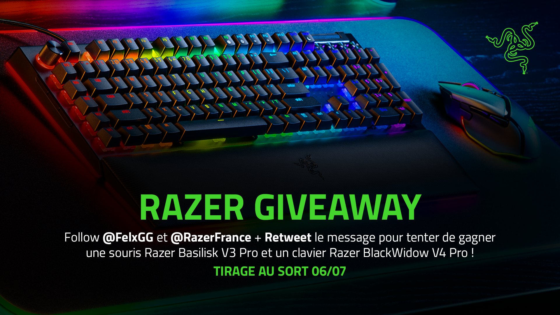 🎁#GIVEAWAY 🎁 Les potes de @RazerFrance régalent le cast français mais ont aussi des cadeaux pour la communauté ! Tente de gagner une souris Basilisk V3 Pro🖱️ & un clavier BlackWidow V4 Pro ⌨️ ➡️Pour participer : RT + Follow @FelxGG & @RazerFrance
