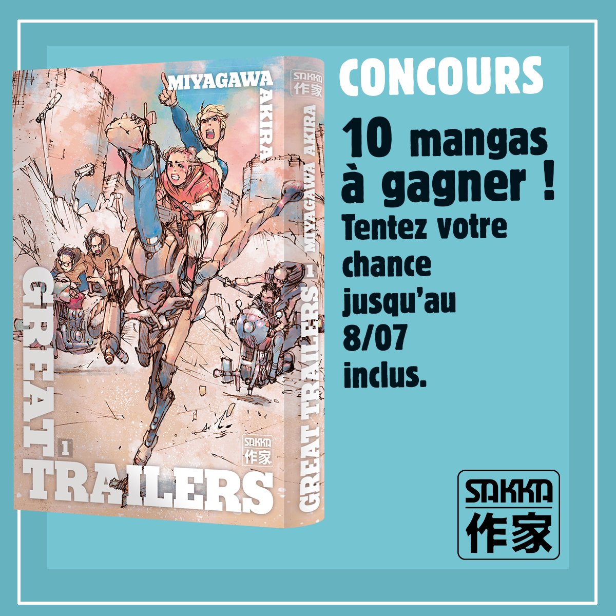 🎁 #CONCOURS à l'occasion de la sortie du manga Great Trailers, jouez : 👉en commentant, 👉en partageant cette publication et 👉en suivant les comptes de MangaNews et @MangaSakka. 📅Tirage au sort le 09/07. Bonne chance !