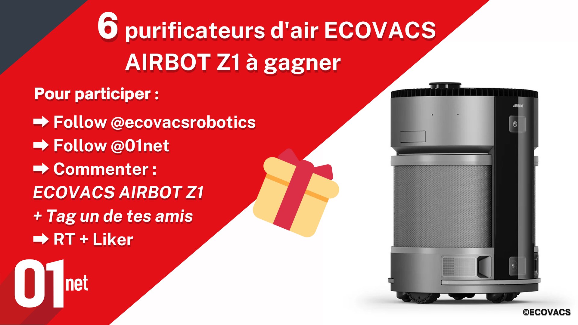 #CONCOURS 🎁6 Purificateurs d'air ECOVACS AIRBOT Z1 sont à remporter🎁 Pour participer : ✅Follow @01net & @ecovacsrobotics ✅Commenter : ECOVACS AIRBOT Z1 ✅Taguer un de ses amis ✅RT + Liker TAS le 13/07 à 17h https://t.co/HNpDYbJA9z Bonne chance à tous !