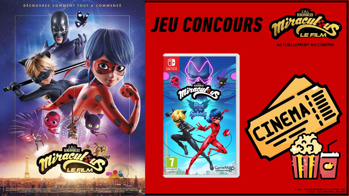 • 1 lot composé de 1 jeu vidéo "Miraculous" sur Switch + 2 places de cinéma pour le film "Miraculous"