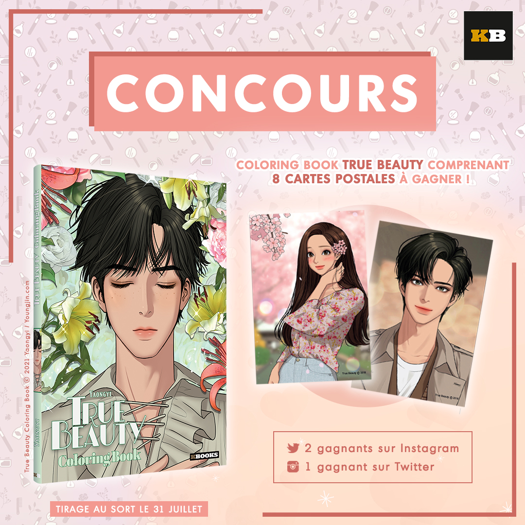 🌸CONCOURS🌸 Avis aux fans de Suho et de Seojun, aujourd'hui on vous fait remporter le joli Coloring Book True Beauty comprenant 8 cartes postales 💗 👉 Follow @kbooks_fr 👉 RT ce tweet 👉 Utilise un mot pour décrire #TrueBeauty 📆TAS le 31 juillet