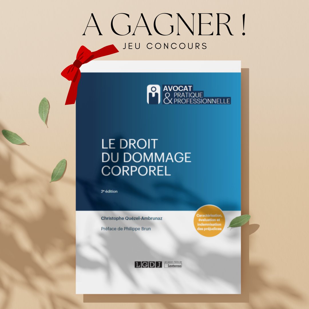 JEU CONCOURS 🎁| Tentez de gagner l'ouvrage "Le droit du dommage corporel" de Christophe Quézel-Ambrunaz ! Pour participer : 1⃣Suivez @LextensoAvocat 2⃣ RT + like ce tweet ✨Tirage au sort le 7 août 2023✨ ℹ️ Règlement du jeu : https://t.co/ZyWQJD6ahw Bonne chance à tous🍀!